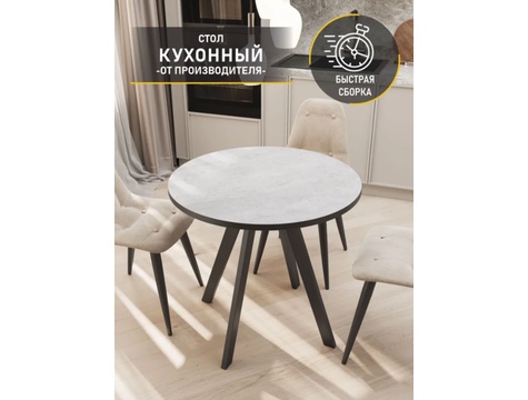 Стол кухонный поставляется в разобранном виде, его легко собрать. Необходимая фурнитура и инструкция по сборке входят в комплект поставки. Размеры готового изделия в собранном виде 90х90см, высота 76 см. Мы используем только качественные материалы и фурнитуру, поэтому наша продукция имеет долгий срок службы.