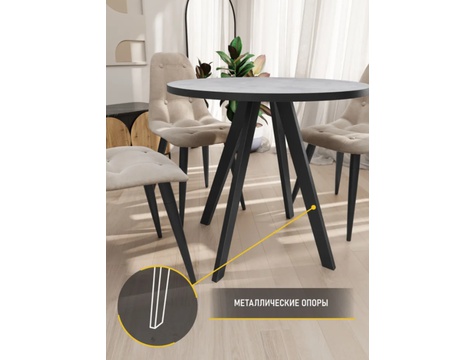 Стол обеденный ЮТА круглый идеально подойдет к любой кухне. За столом с комфортом могут разместиться до шести человек.