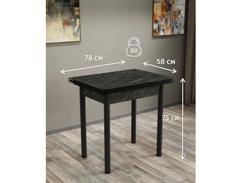 Стол кухонный раскладной FORTmeb Ломберный 78х58х75 см, Креатель, ноги черные металл