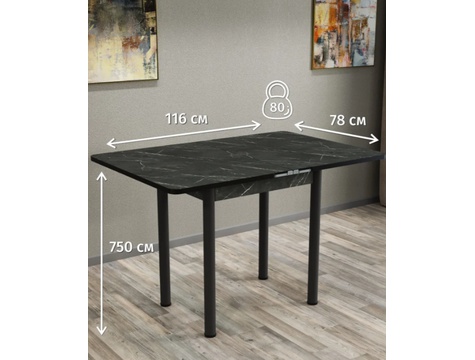 Стол легко раскладывается при помощи поворотно-раскладного механизма, что обеспечивает удобство использования. В разложенном виде столешница имеет размеры 116х78 см, что позволяет разместить достаточное количество гостей.