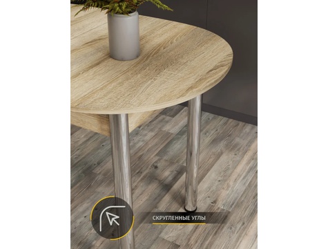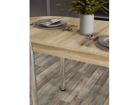 Особенностью данного стола является его раздвижной механизм. Благодаря этому, вы сможете быстро и просто увеличить размер столешницы, если к вам придут гости. В разложенном виде стол может комфортно разместить до восьми человек.