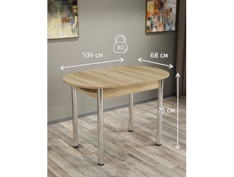 Стол выполнен в овальной форме, что придает ему современный и элегантный вид. Материал столешницы и основания - ЛДСП, что обеспечивает прочность и долговечность изделия.
