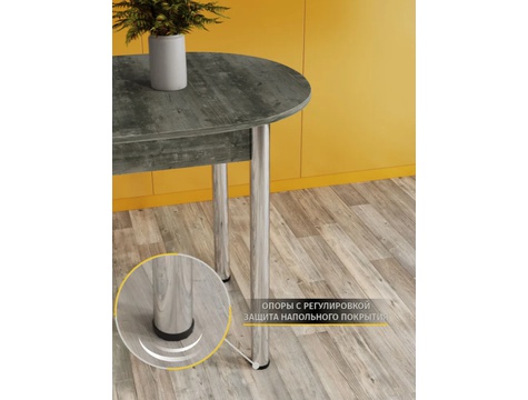 Особенностью данного стола является его раздвижной механизм. Благодаря этому, вы сможете быстро и просто увеличить размер столешницы, если к вам придут гости. В разложенном виде стол может комфортно разместить до восьми человек.