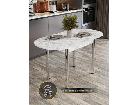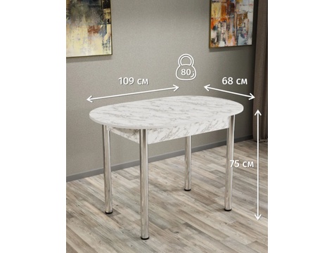 Стол выполнен в овальной форме, что придает ему современный и элегантный вид. Материал столешницы и основания - ЛДСП, что обеспечивает прочность и долговечность изделия.