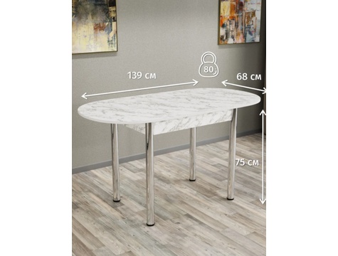 Размеры стола составляют 109х68 см в собранном виде и 139х68 см в разложенном. Высота стола - 75 см. Вес стола - 18 кг.