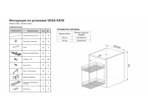 VEGA KR39 — складная корзина-карго в круглом прутке для удобного хранения ёмкостей различной высоты в модулях шириной 400 мм.
