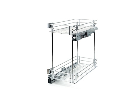 Установка направляющих по диагонали обеспечивает наиболее жёсткое крепление, лучшее сцепление каждого яруса корзины с направляющими и стабильный ход при полном выдвижении, даже с максимальной загрузкой корзины.