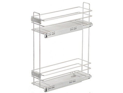Корзина UMM выдвижная Квадро ( бутылочница ) двухуровневая для нижних кухонных шкафов , в базу по ширине 150 мм