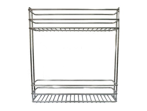 Полка двойная для бутылок (бутылочница) предназначена для хранения бутылок и другой посуды схожей формы и удобного доступа к продуктам в кухонном шкафу.