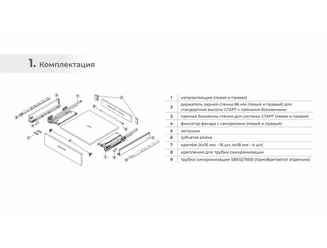 При создании габаритных мебельных ящиков шириной от 600 мм рекомендуется использовать поворотно-синхронизирующую трубку SBS12. Держатели для трубки представлены в комплекте СТАРТ PUSH+SOFT, а SBS12 приобретается отдельно.