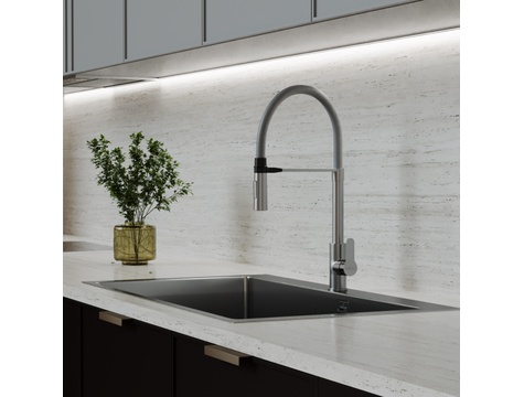 Смесители для кухни Mixline MLSS-0402 с гибким изливом сочетают в себе современный дизайн и функциональность, делая задачи на кухне проще и удобнее. Излив фиксируется магнитным замком за одну секунду.