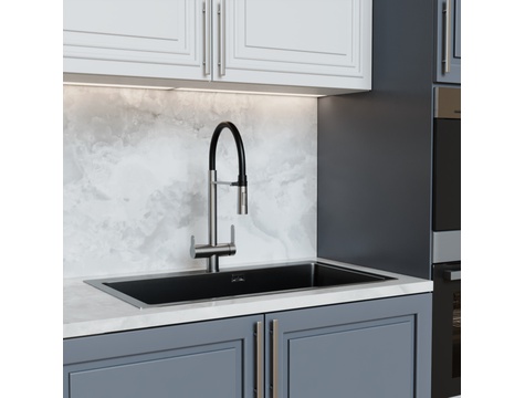 Смесители для кухни Mixline MLSS-0401 с гибким изливом сочетают в себе современный дизайн и функциональность, делая задачи на кухне проще и удобнее. Излив фиксируется магнитным замком за одну секунду.