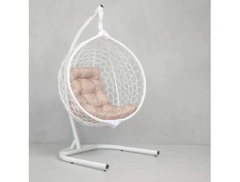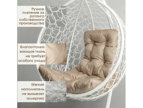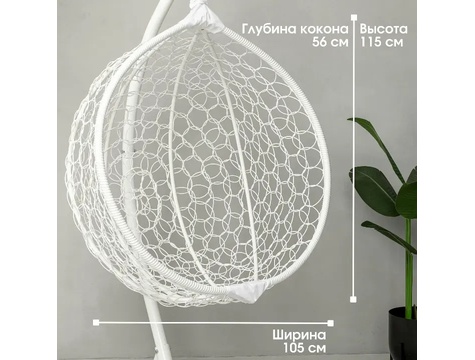Кокон с лёгким ажурным плетением. - Выдерживает до 120 кг - Сплетены вручную из эко-ротанга - Срок службы до 30 лет В комплекте подушка трапеция из водоотталкивающей ткани оксфорд Характеристики: Материал – эко-ротанг Каркас – сталь Материал ткани подушки - оксфорд Размеры: Глубина - 63 см (+ - 3 см) Ширина - 100 см Высота корзины - 115 см Высота стойки - 175 см
