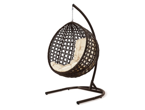 Подвесное кресло исполнено по особой технологии производства с декоративным плетением из собственного ротанга.