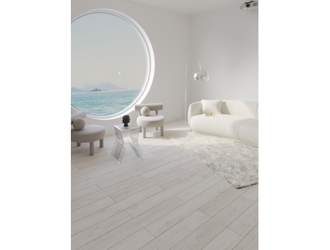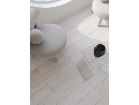 Декор Дуб Азгил белый воссоздает облик дощатого пола с изысканным рисунком древесины дуба в очень светлой цветовой гамме.