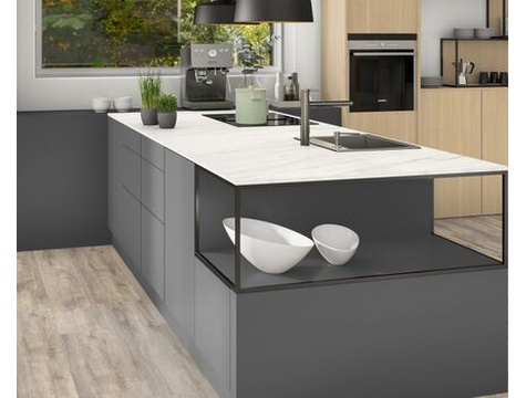 Диамант серый – по степени темноты этот декор нейтрального серого цвета может быть поставлен в один ряд с холодными серыми тонами после Чёрного и Графита серого. Этот однотонный декор относится к почти чёрным оттенкам Nearly Black (почти чёрный), которые используются в качестве более мягкой альтернативы резким контрастам с Чёрным. Очень приятно смотрятся контрастные сочетания со светлыми, естественными древесными декорами.