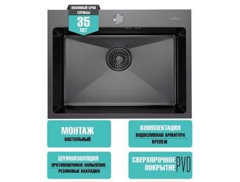 Кухонная мойка имеет PVD-покрытие, которое получают путём нанесения металла, доведенного до парообразного состояния при высокой температуре в камере под вакуумом, на поверхность мойки.