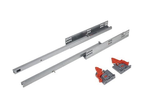B-Slide DB8785 — базовые направляющие скрытого монтажа полного выдвижения с открытием от нажатия и выверенным набором опций и возможностей для мебельных производителей.