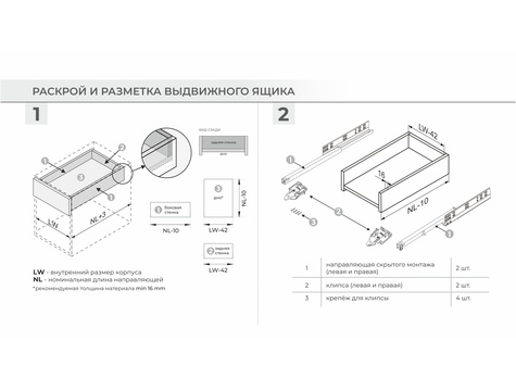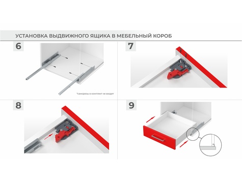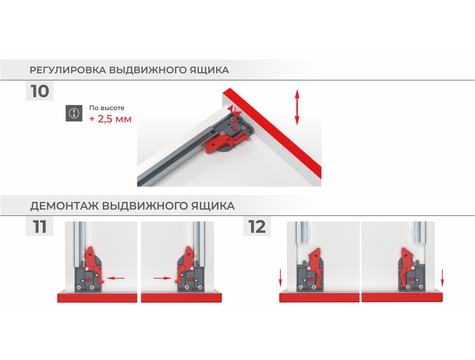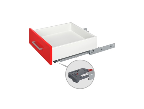 - простой монтаж выдвижного ящика на направляющие и быстрый демонтаж;