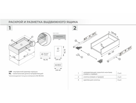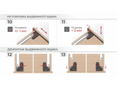 - простой монтаж выдвижного ящика на направляющие и быстрый демонтаж;