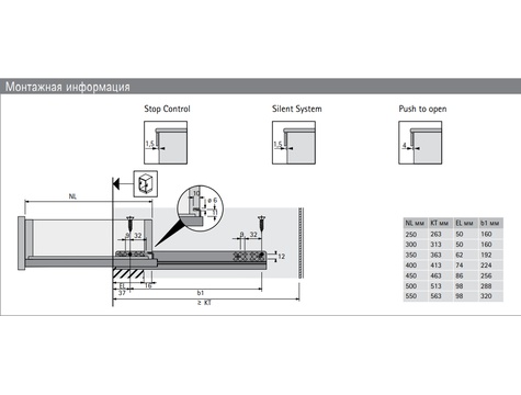 ***При использовании держателя для фиксации полки в выдвинутом положении длину ящика необходимо уменьшить на 12 мм. (NL) (NL - 12 мм)