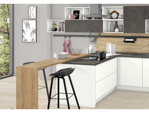 Столешницы, выполненные по технологии постформинг (модель 300/3) являются общепризнанным классическим решением для столешницы. Они привлекают бесшовной облицовкой, при которой бумажно-слоистый пластик непрерывно переходит с лицевой стороны по радиусу скругления кромки на нижнюю пласть столешницы. На передний продольный край столешницы нанесена опорная кромка из тонкой ДСП для придания изделию ударной прочности и абсолютной ровности поверхности. В качестве плиты-основы используется Eurospan ДСП E1E05 TSCA.