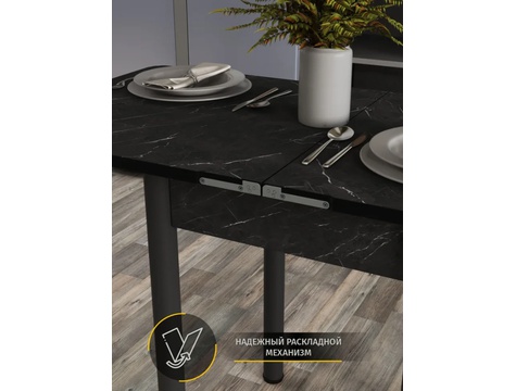 Стол легко раскладывается при помощи поворотно-раскладного механизма, что обеспечивает удобство использования. В разложенном виде столешница имеет размеры 116х78 см, что позволяет разместить достаточное количество гостей.