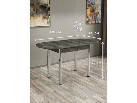 Размеры стола составляют 109х68 см в собранном виде и 139х68 см в разложенном. Высота стола - 75 см. Вес стола - 18 кг.