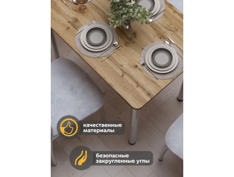 Кухонный обеденный стол - это прекрасное решение для тех, кто ищет универсальность и стиль в своем интерьере. С его прямоугольной формой, вы легко сможете разместить его в любом уголке комнаты, дома, дачи и квартиры. Этот стол отлично подойдет как для кухни, так и для гостиной, благодаря своей универсальности. Металлические опоры обеспечивают прочную поддержку и долговечность конструкции, делая его надежным и устойчивым. В результате, этот стол станет не только функциональным элементом интерьера, но и прекрасным дополнением к вашему домашнему уюту.