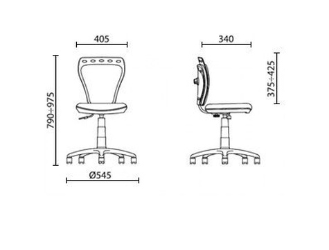 Размеры поворотного стула "MINISTYLE GTS" в мм: